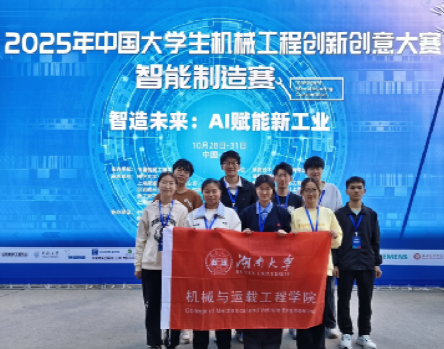 2025年10月27至29日,中国大学生机械工程创新创意大赛第八届智能制造赛全国总决赛(智能装备与产线应用方向、智能生产管控方向)在上海新国际博览中心举行,我校由机械与运载工程学院9名学生组成的3支代表队分别荣获了智能装备与产线应用方向一等奖2项,智能生产管控方向一等奖1项。